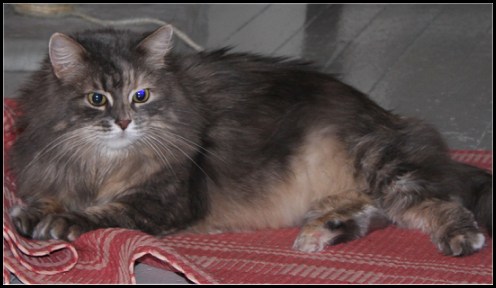 sinikilpikonna cl. tabby (SIB g 22) Synt: 6.12.2004, Vaasa Päästettiin pitkään kestäneen sairauden jälkeen sateenkaarisillalle: 13.11.2019 Isä: IC Agis-Taschlove*PL Emo: IP IC Lumikissan Aikataika DM Kasvattaja: Tiina ja Pasi, Fi*Lumikissan Sukutaulu Testit: FEL neg FIV neg Veriryhmä A HCM neg 9/2007 Ei kanna naamiogeeniä Näyttelymenestys: 1 x Värin paras |